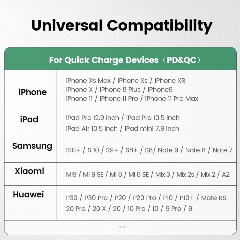 Apple Fast Charging,Samsung AFC,Huawei Fcp,Quick Charge 4.0/3.0