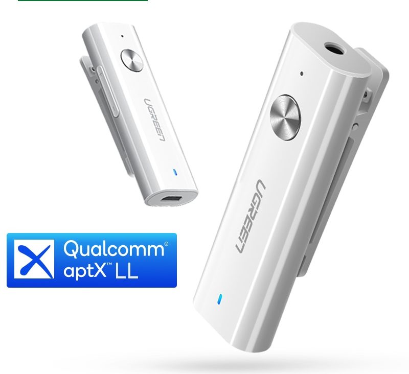 Wireless audio adaptersupports Qualcomm® aptX™LL decoding technology to restore CD stereo sound quality. QCC chip for more stable, faster transmission and lower power consumption.