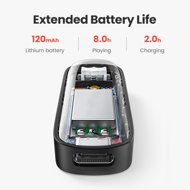 3.5mm Audio adapter has built-in 120mAh battery, which can be used continuously for 8 hours and fully charged in just 2 hours.